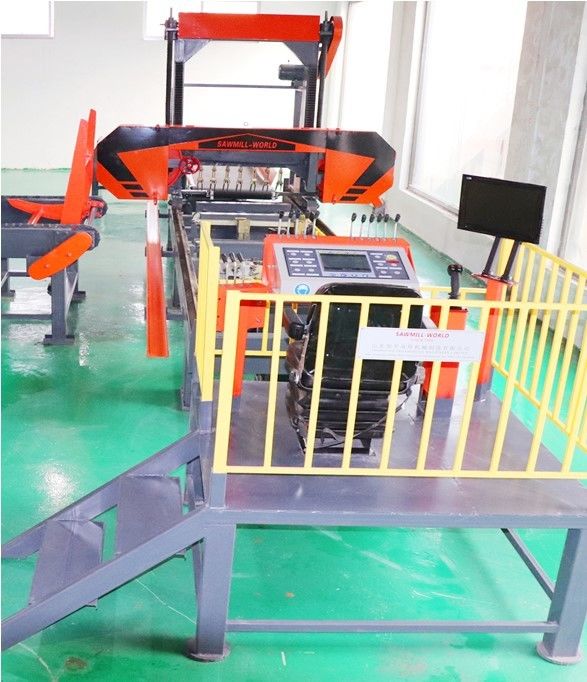 Совмещенный с гидравлической технологией автоматизации, гидравлическая автоматическая горизонтальная лесопилка диапазона осуществляет полностью цифровой умный контроль.